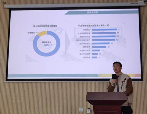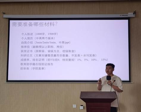 赵博文学长以英国为代表的欧洲国家为例,对留学申请流程、专业对口院校等相关信息,进行了细致地讲解与介绍。赵学长建议同学们一定要早做规划、早做准备,合理安排好自己大学的每个时间段。同时较为细致地向同学们介绍了以英国为例的出国留学的录取标准、硬性条件、软性背景,以及留学择校、留学费用、学制和政策等方面的内容。赵博文学长表示出国留学是大学生未来发展的路径之一,唯有早做规划,一步一个脚印进行准备,才能够更加从容应对。