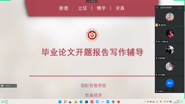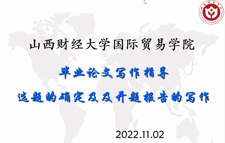 SEX8 为进一步做好2019级本科生开题报告指导工作,于20221031日至112日,由国际经济与贸易教研室、贸易经济教研室、国际商务教研室和农林经济管理教研室分别主持召开了开题报告专题讲座。