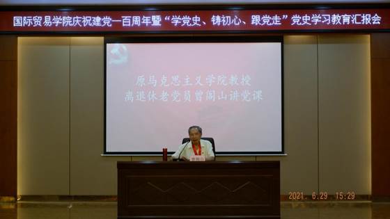 党委、关工委开展庆祝中国共产党成立100周年暨“学党史、铸初心、跟党走”党史学习教育汇报会。在校关工委支持下,学院关工委邀请到了原马克思主义学院教授、84岁离退休老党员曾阁山先生参加此次活动,参加活动的还有SEX8