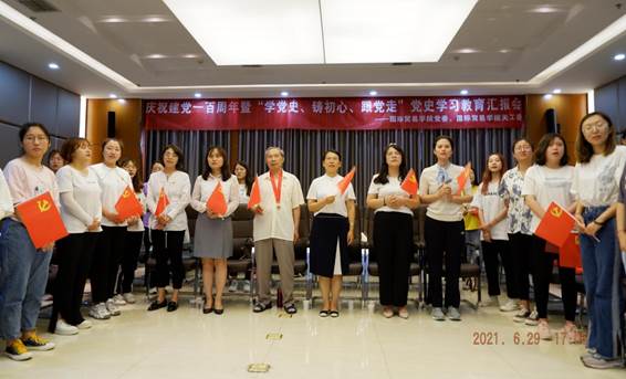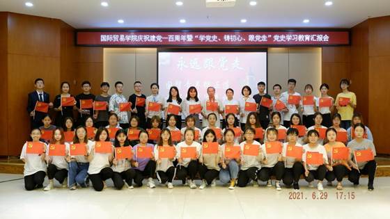 会上,2019级贸易经济一班高红霞说在殷老师的督促带领下、在对党史学习的不断深入中,她深刻地认识到只有坚持不懈才能继续奋进,坚持不懈是一种习惯,它会让即使平凡的事变得伟大。2018级贸易经济二班学生党员武雅婷说,通过本次党史学习教育,她深刻学习优秀党员的优良作风和精神,从中汲取了开拓前进的智慧和力量,激励她将党史学习内化于心,外化于行,争做一名优秀的共产党员。2019级产业经济学研究生白佳敏呼吁青年学生要坚定信仰、坚持奋斗奉献精神,要把党史学习作为提升党性修养、思想境界、道德水平的精神养料。本次党史学习教育打卡活动的学生负责人——2019级国际经济与贸易一班刘静为大家分享了她的工作感悟与学习心得,她说通过学习榜样人物矢志奋斗、一丝不苟、精益求精的精神,并在实践中不断探索,不断改进工作方法,切实提升了同学们对学院的归属感和责任感。这一环节以SEX8
