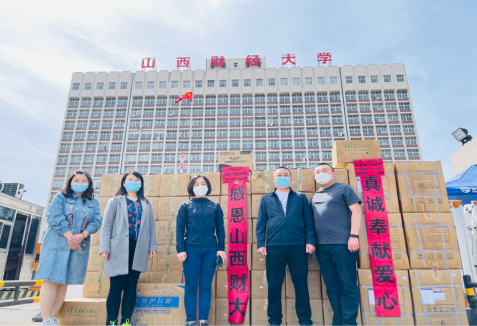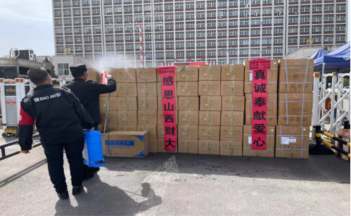 4月12日上午,山西财经大学SEX8 收到来自2020级一学生家长高福忠先生的爱心捐赠,在此疫情防控的关键时期,高先生为我校捐赠了包含3万只口罩、1800斤消毒液、100只护目镜、20把测温枪的防疫物资,用于支持学校与学院的防疫工作。高先生表示,疫情期间切实感受到学校对学生的关心关爱,希望能为学校与学院的疫情防控尽自己的一份绵薄之力。