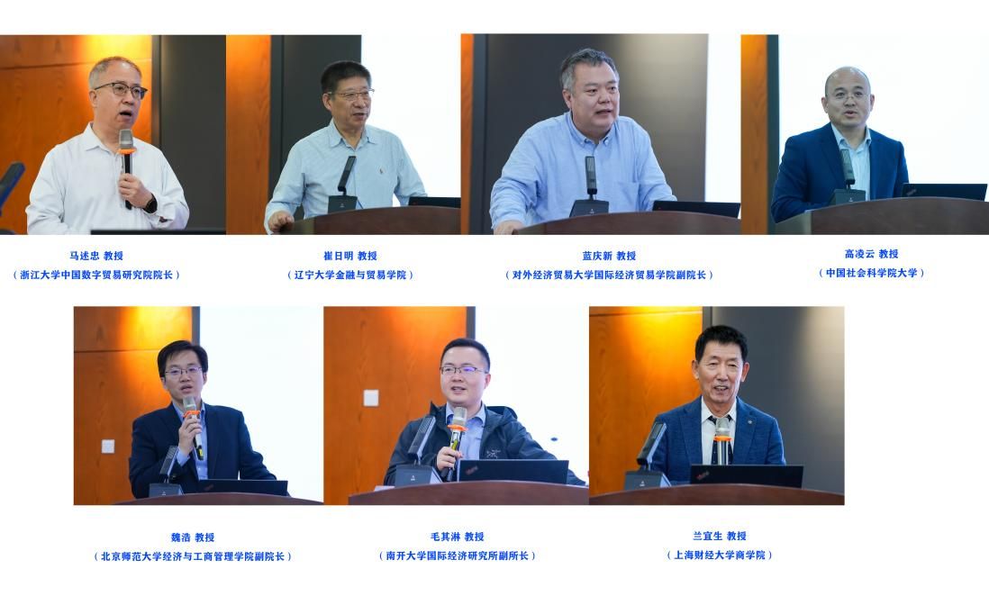 本次会议的主题是“高水平开放型经济体制与新质生产力”。在会议上半场的主旨演讲中,浙江大学马述忠教授以《中级数字贸易学》为例,生动形象地分享了中国数字经济与贸易自主知识体系构建从1.0到3.0的迭代历程。辽宁大学崔日明教授深入剖析了全球数字贸易发展的趋势特点、数字贸易发展背景下国际商务人才供需现状及能力素质培养要求,在此基础上提出了全球数字贸易发展背景下国际商务专业产教融合体系构建的思路建议。对外经贸大学蓝庆新教授从提升产业链供应链安全水平和韧性的重要意义、主要成效、具体进展、存在问题以及政策建议等方面对《提升产业链供应链安全水平和韧性》进行了全方位阐释。