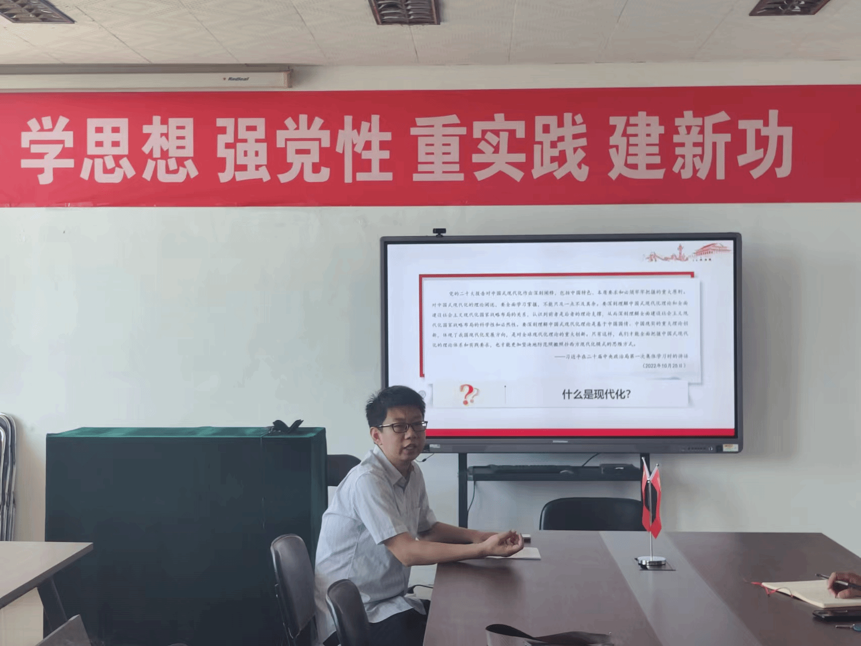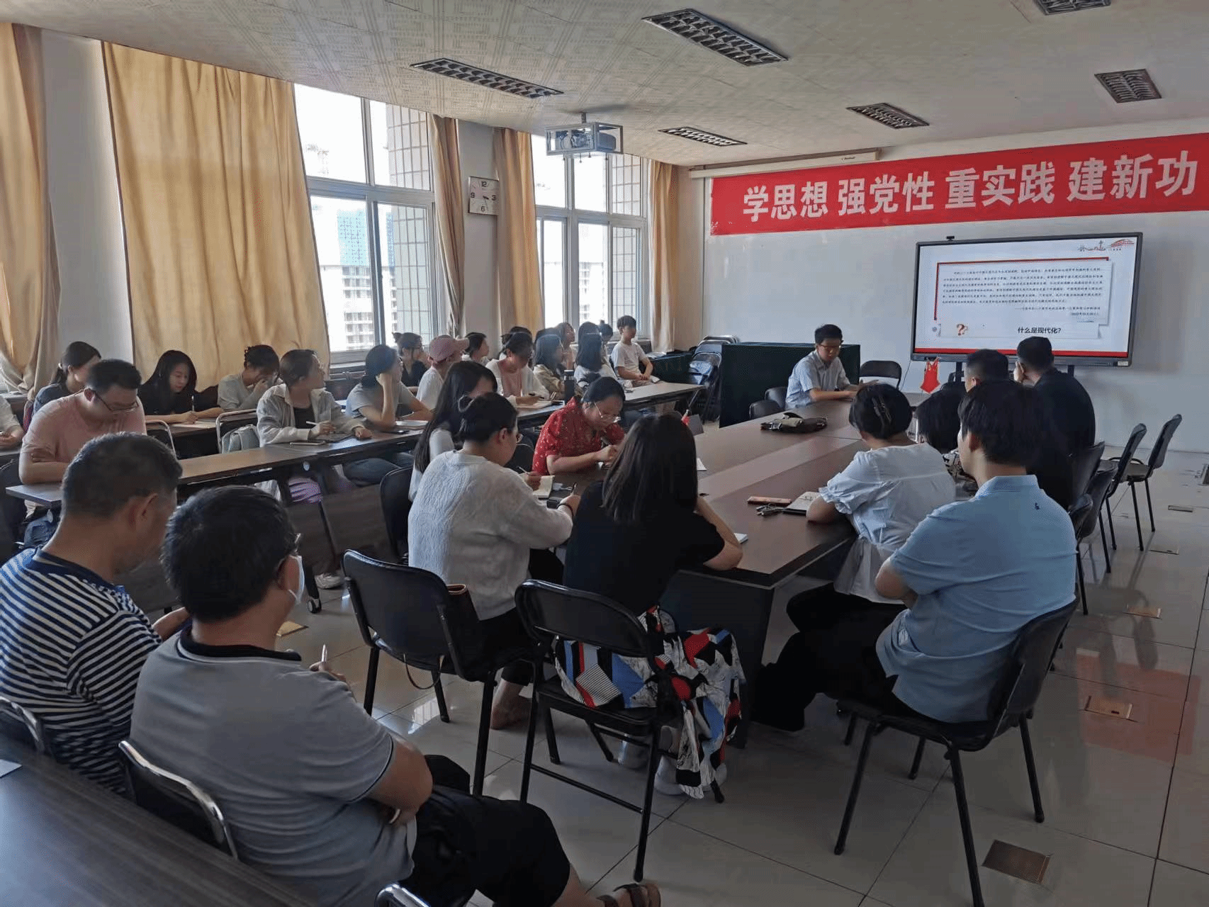 620日下午,SEX8 党委邀请学校主题教育宣讲团成员、马克思主义学院徐朝卫老师做了题为“大力推进中国式现代化”的专题宣讲。报告会由学院党委书记陈晓虎主持,师生代表50余人参加。